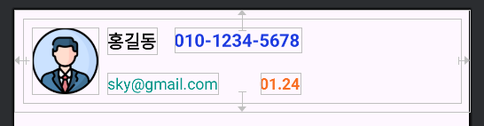 ③ 동일한 방법으로 이메일에 대한 textView도 추가해서 아래처럼 적당할게 설정해 주세요.