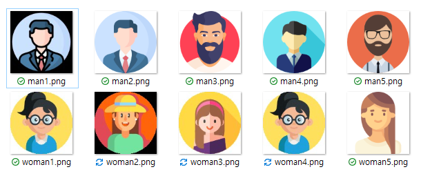 이 사이트의 경우 무료로는 하루 10개 정도 받을 수 있기 때문에 5개는 남자 이미지 5개는 여자 이미지로 총 10개를 다운로드하여서 아래와 같이 man1~5 , woman1~5로 네이밍 합니다.