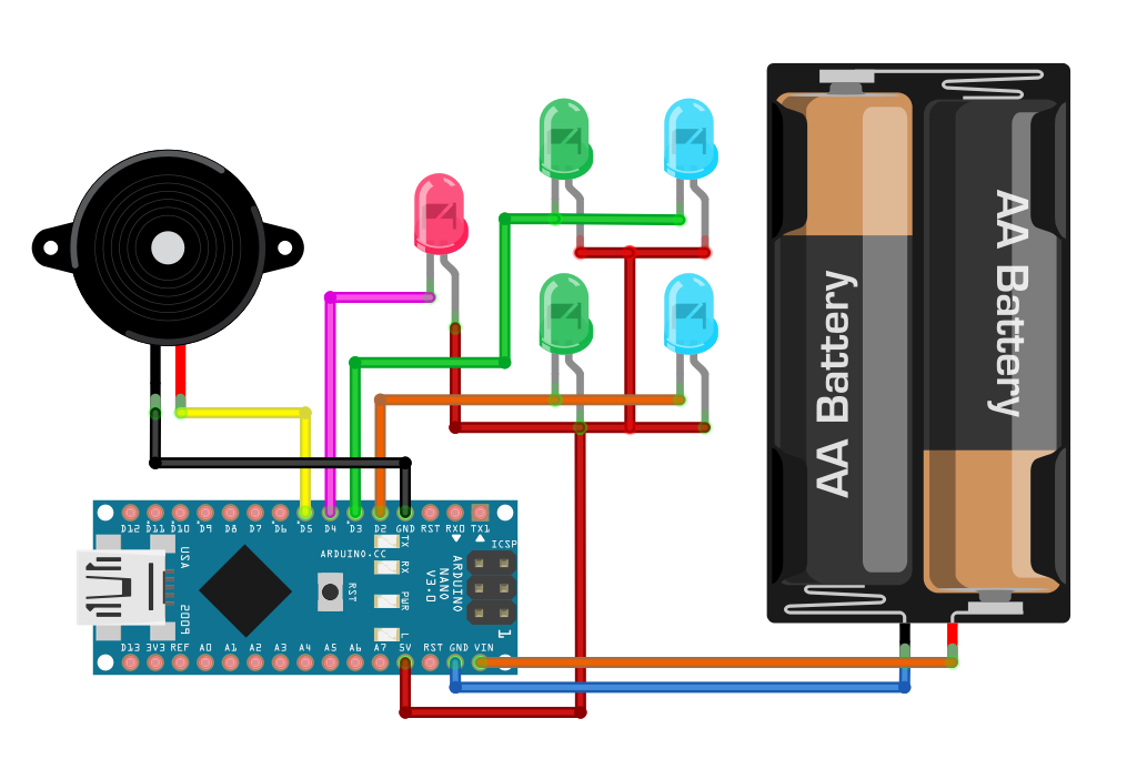 회로 설계는 이와 같이 했고요, 좀 더 화려하게 하고 싶다면, LED와 저항을 병렬로 더 추가해서 제작하면 됩니다.