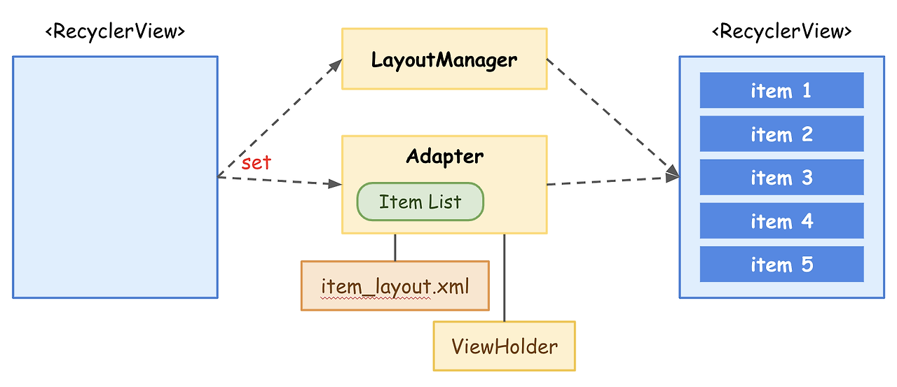 리사이클러뷰의 전체적인 구조는 아래와 같습니다.