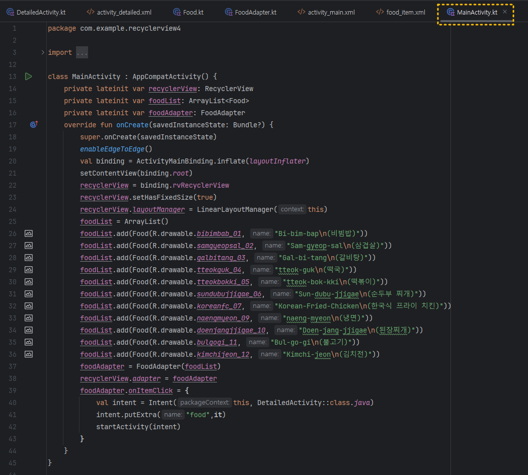 그럼, MainActivity.kt 파일의 완성된 전체 코드를 한 번에 보여드리면 아래와 같아요.