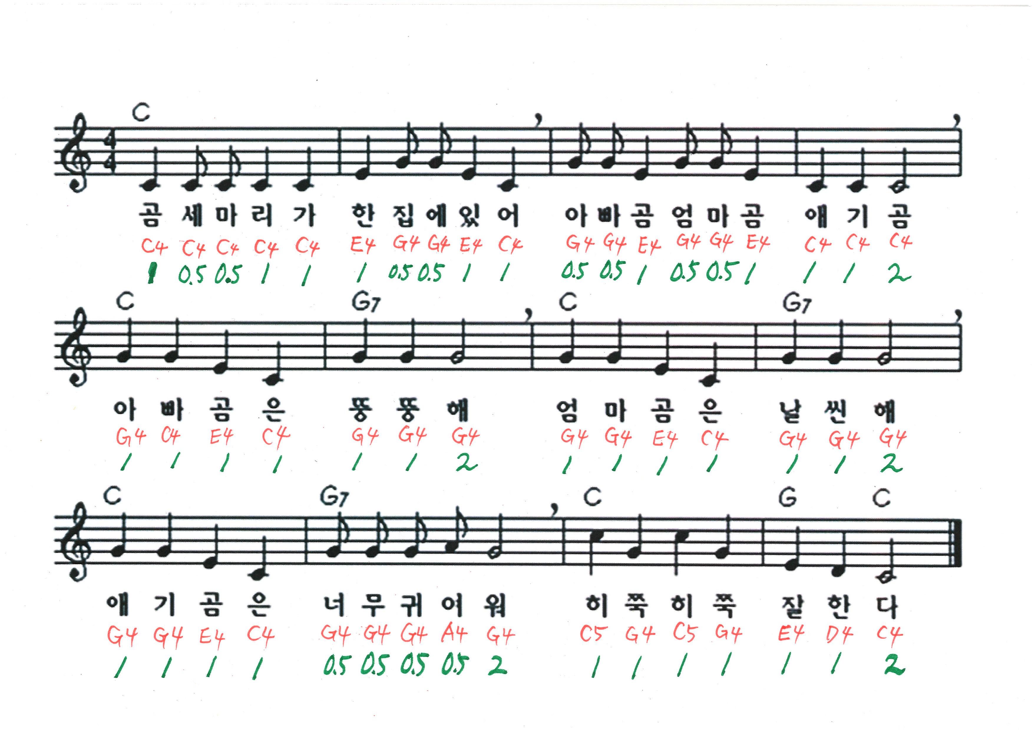 그럼, 예시로 쉬운 동요 한 곡을 코드로 만드는 과정을 보여드릴게요.