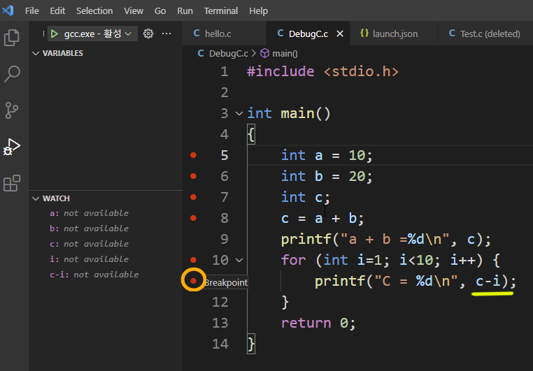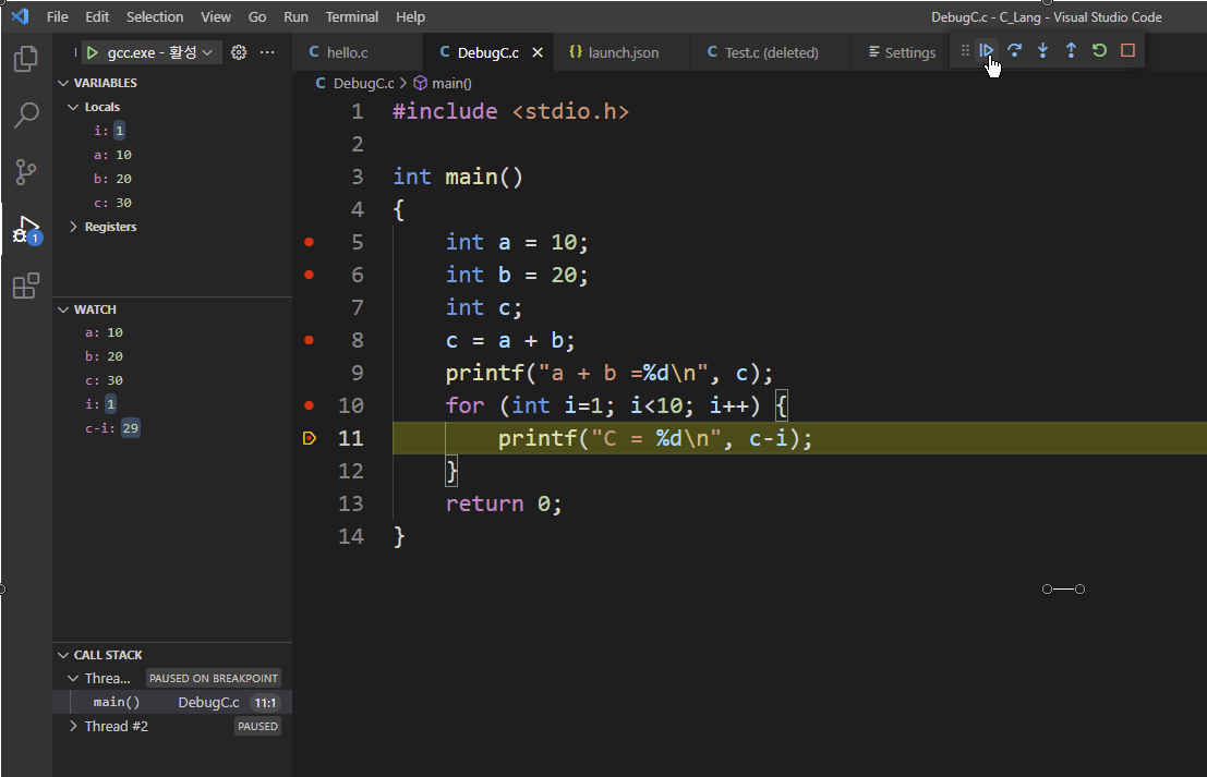 방금 설정한 방법은 작성하고 있는 C 코드 파일별로 설정이 가능한 방법인데요,