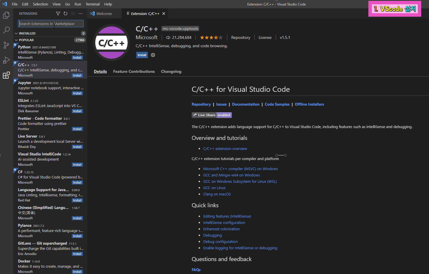 | 【 C 환경설정 】 VS code에서 C/C++ 코딩환경 구축하기 (149) | 2020.07.05 |