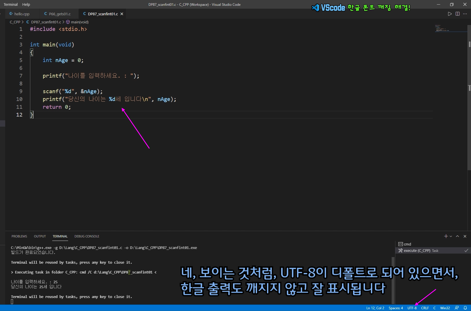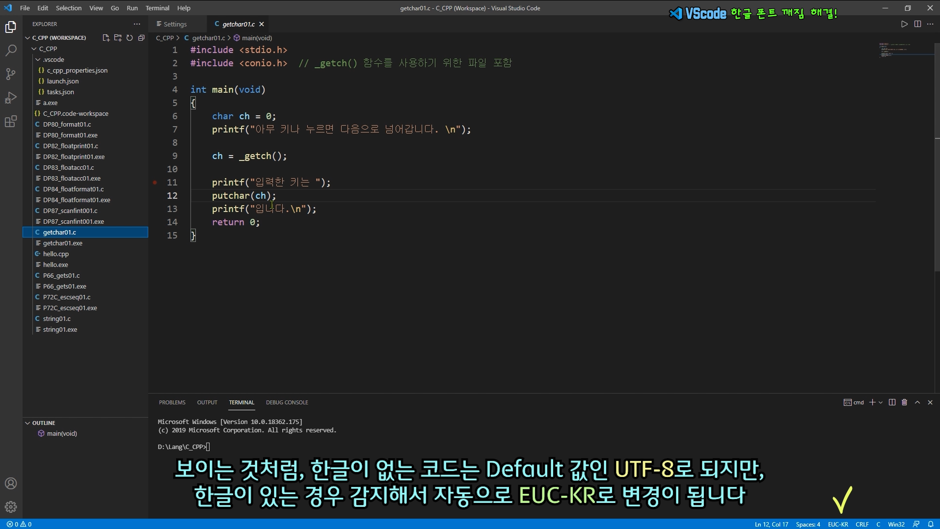▶ 동영상으로 VScode에서 한글 코드 깨짐문제 해결하는 법 확인하기!