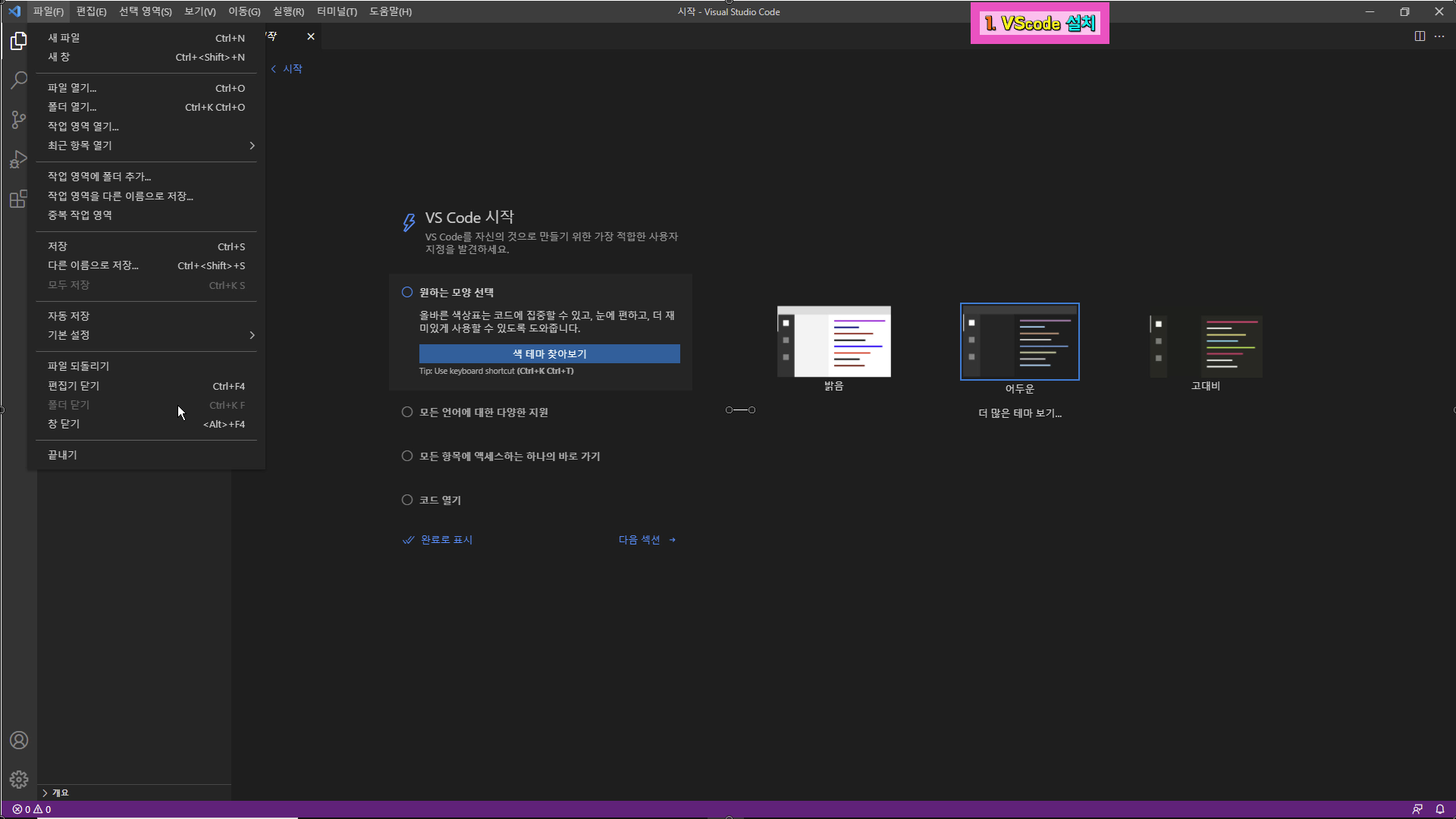 재부팅 후, 다시 VScode를 실행시켜 확인해 보겠습니다.