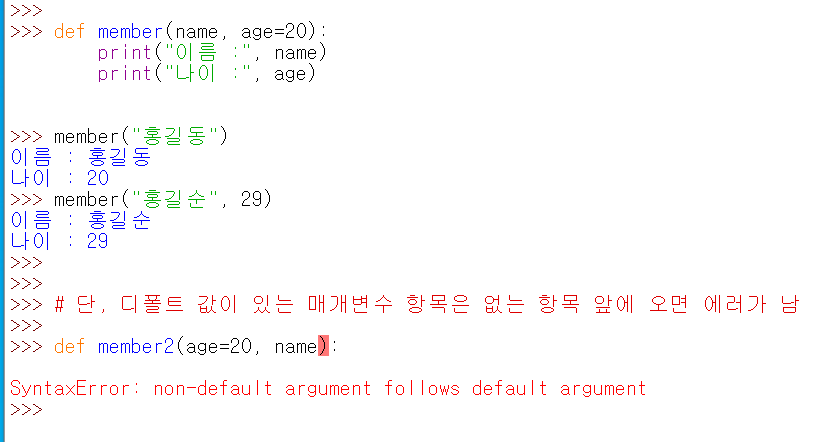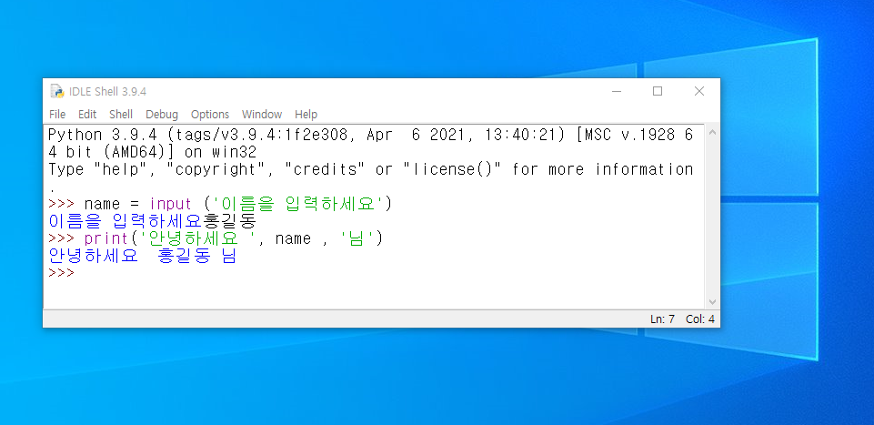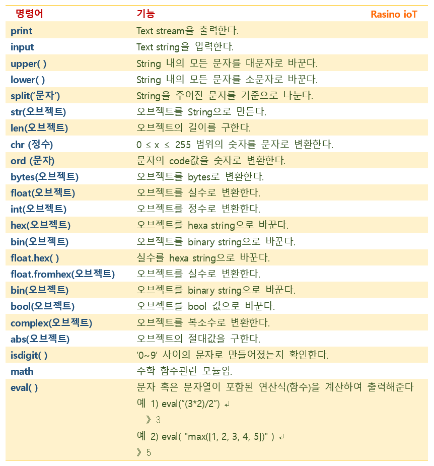 | len(string) | string의 길이 | len('abcdefg') → 7 |