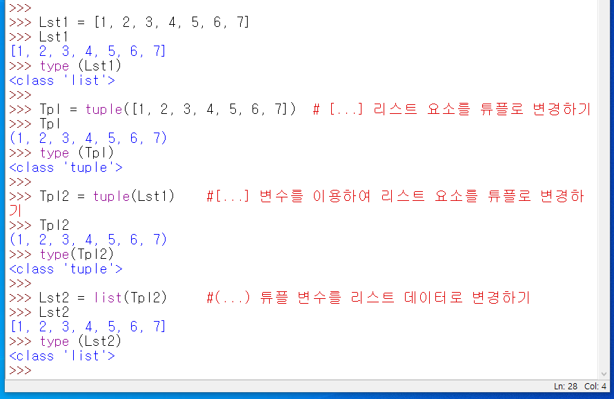 : 리스트의 경우 내용이 같아도 순서가 다를 경우 서로 다른 리스트로 인식됩니다.