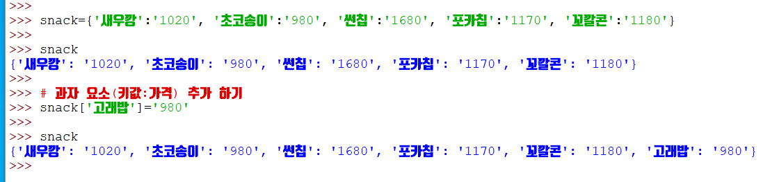 3. 《 딕셔너리 데이터 쌍(Pair) 추가, 삭제하기 》