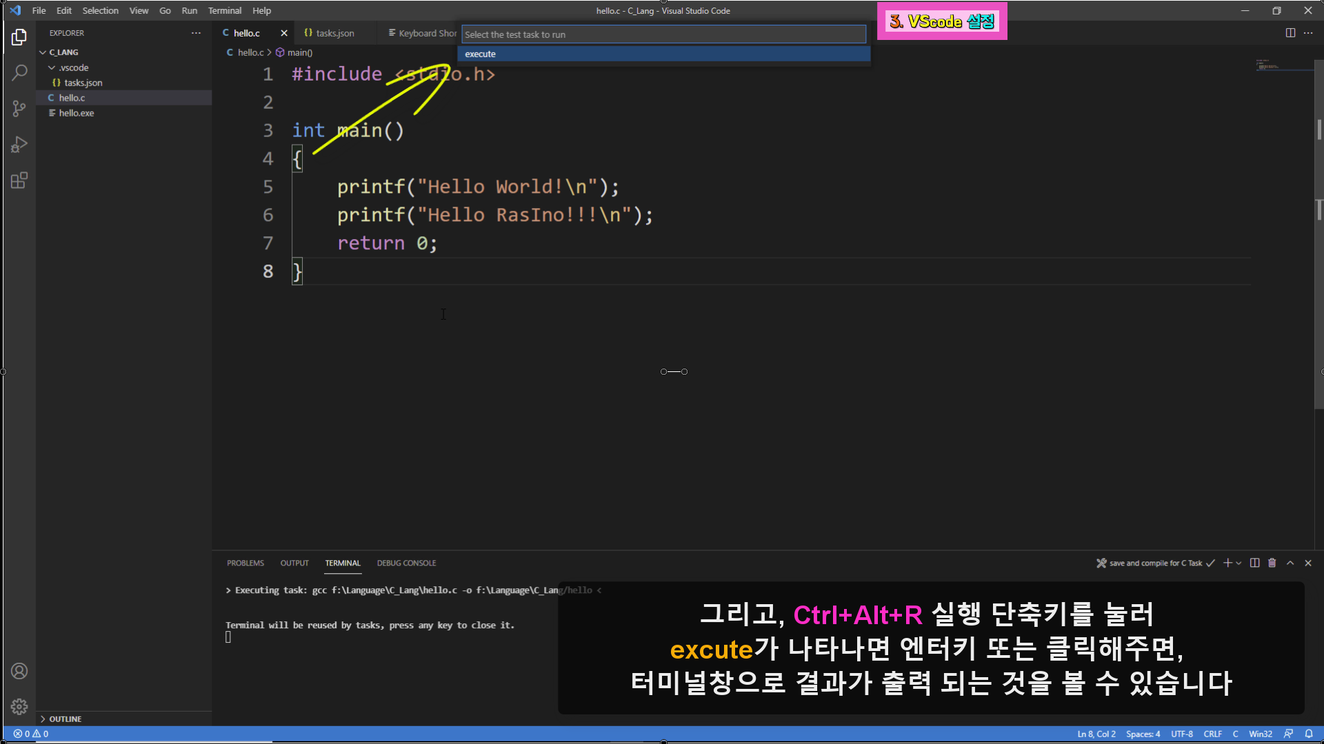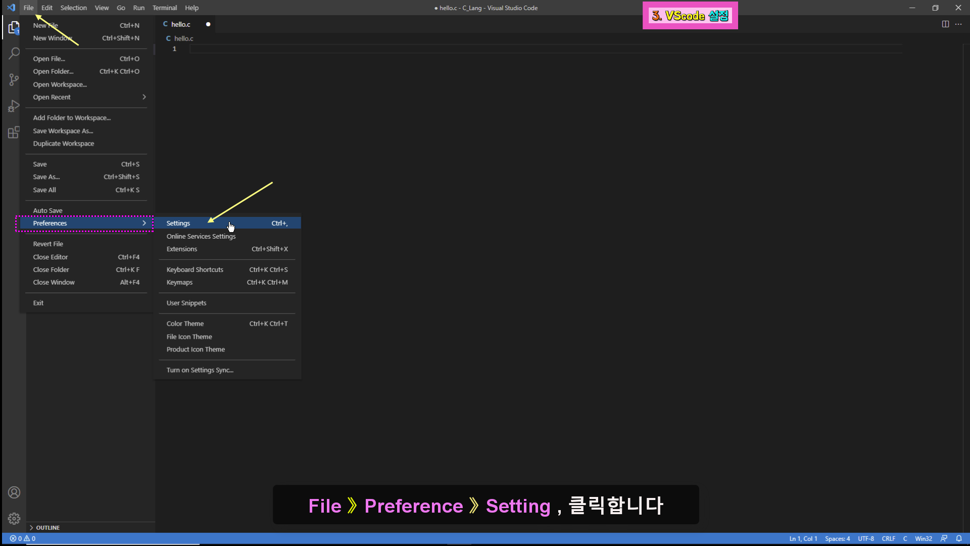 VScode에서 C & C++ 코드 실행 시 한글 깨지는 현상을 해결하는 방법에 대한 기본적인 VScode 설정은 아래를 먼저 참고해 보세요. 그리고 그 방법 이 외에 코드를 작성할 때 방지하는 코드 라인을 작성하는 방법에 대해 소개하려 해요.