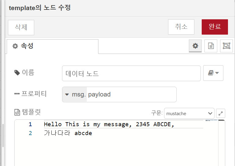 템플릿(Template) 노드의 데이터 설정은 아래처럼 했습니다.