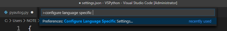 2. < Ctrl + Shift + P > 단축키를 눌러 아래창을 띄우고 "Configure Language Specific" 입력, 엔터친다